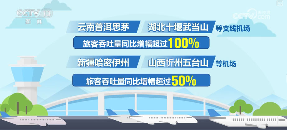 而随着暑期旅游市场火热,旅游目的地支线机场旅客规模也迅速提升。云南普洱思茅、湖北十堰武当山等支线机场旅客吞吐量同比增幅超过100%。新疆哈密伊州、山西忻州五台山等机场旅客吞吐量同比增幅超过50%。而暑期新增加密的航线,也为旅客出行提供了更加便捷的选择。