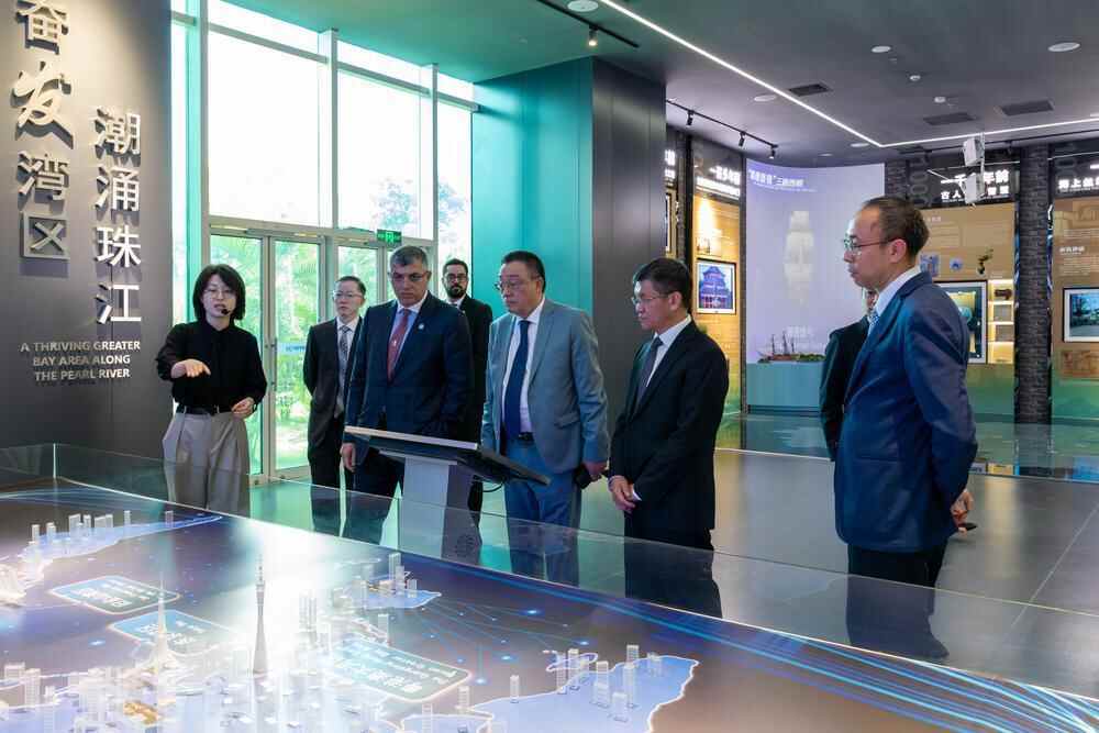 在广东访问期间,阿卜杜拉·阿尔·曼杜斯一行到访位于广州中新知识城的世界气象中心(北京)粤港澳大湾区分中心,参观智慧气象科普展馆、海洋观测实训室、低空经济区及研修中心教学实训室,深入了解分中心职能和国际交流合作情况。赴深圳市气象局参观低空气象观测设备展,前往华为总部与研发中心了解人工智能气象应用等情况。