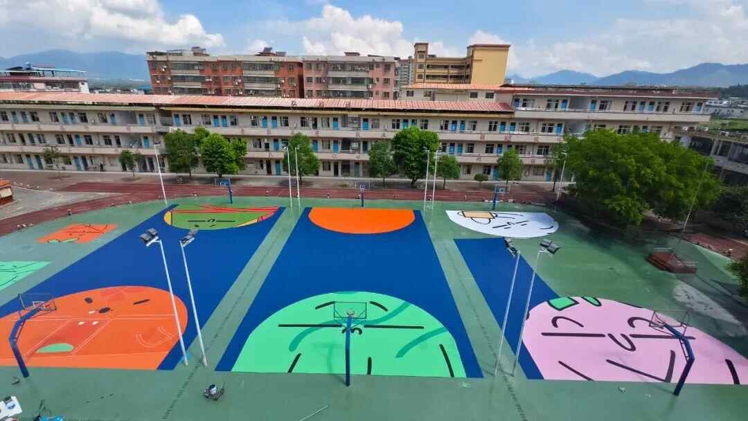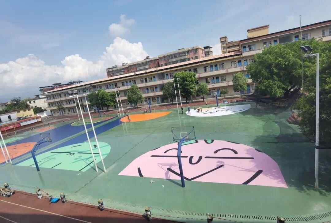 翁小的诗歌操场,实在太漂亮!我在两边教学楼顶楼反复看,反复拍;在不同时段拍,在不同楼段拍,怎么都看不够。白天阳光非常强烈,画面更加绚烂。