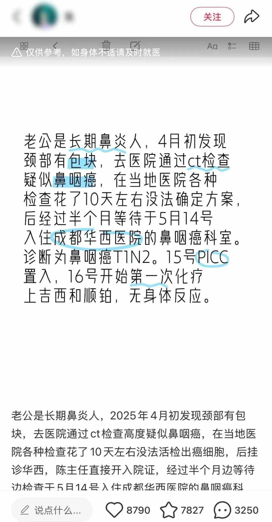 最近网上有个博主分享的个人经历引起了很多鼻炎人的担忧:“老公是长期鼻炎人,4月初发现颈部有包块,去医院通过CT检查疑似鼻咽癌……”