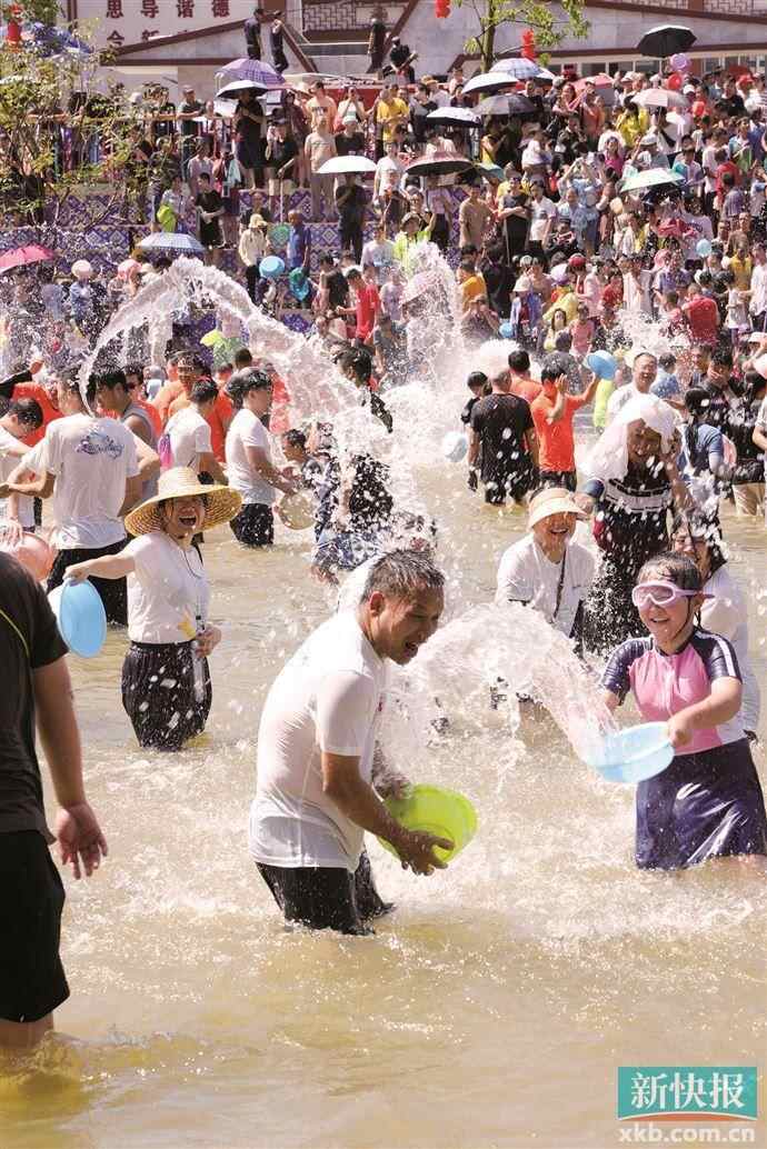 活动现场,祭水仪式、壮乡鼓乐《鼓唤千溪》、时装表演《那锦·那韵》、连山本土舞蹈《米香簸影》、《耍水歌》等精彩节目让四方游客陶醉。随着戏水祈福环节开展,人们跳入浅浅的河水中,用水盆尽情互泼、互相传情,吉水河畔即刻沸腾。当地群众告诉新快报记者,每年这个活动比过年还热闹。不少来自清远本地甚至全省各地的游客都会过来体验戏水狂欢。