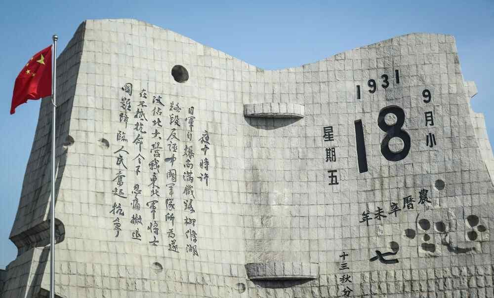2021年9月18日拍摄的辽宁省沈阳市“九一八”历史博物馆的残历碑。新华社记者 潘昱龙 摄