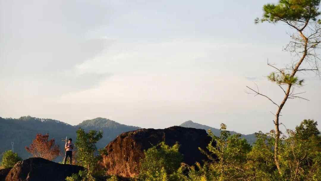 前面夕阳阴影处,忽见凸起一块大石头。让村委主任过去企其中,石头突然蹿起万丈高。一旁,正是那八大山人的松!它真是孤傲了一个世纪又一个世纪。
