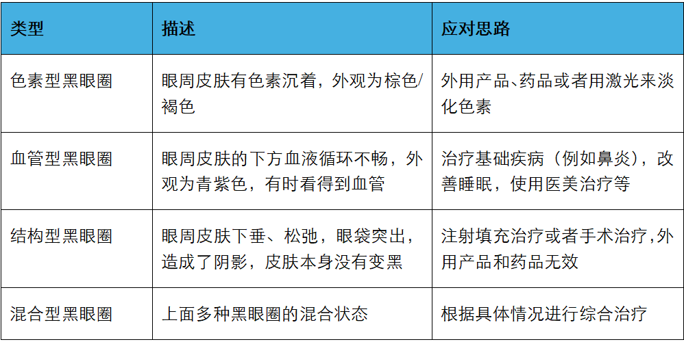 所谓的黑眼圈,其实并不是淤血导致的。医学上通常把黑眼圈归为4大类,它们由不同的原因产生的,且应对措施各不相同。