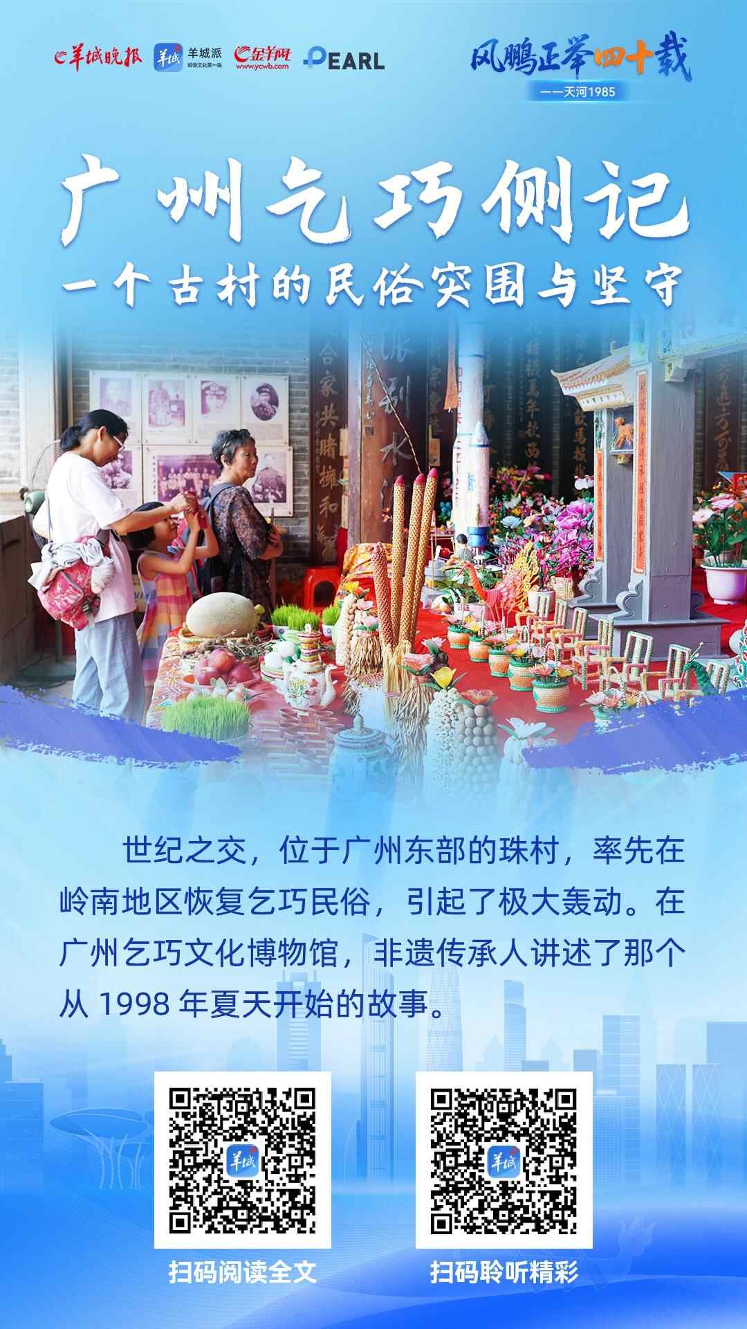 看着如今这般景象,谁能想到,三十年前,像“摆七娘”这样的乞巧民俗,曾被冠以封建迷信的标签,人们要关起门来偷偷进行。七夕前夕,羊城晚报记者探访了广州珠村,在二十、二十一世纪之交,珠村率先在岭南地区恢复乞巧民俗,获得“中国乞巧第一村”的美誉,让千年乞巧习俗焕发出新的生命力。