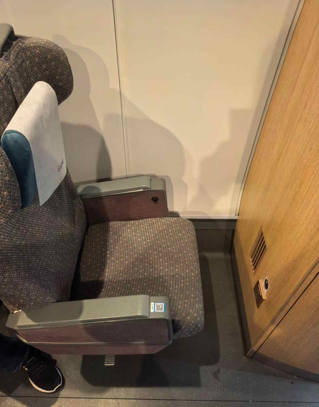 该网友贴出的照片显示,他乘坐的是8月28日上午从重庆西至贵阳北的G2865次列车,座位在某车厢的2F号,票价是532元,而一等座和二等座票价分别是472元和296元。这个座位是过道旁的单独一个座椅,但腿部空间十分狭窄,目测仅20余厘米,前方就是柜子,人坐下后膝盖几乎就顶到了柜子,上半身离柜子也很近。