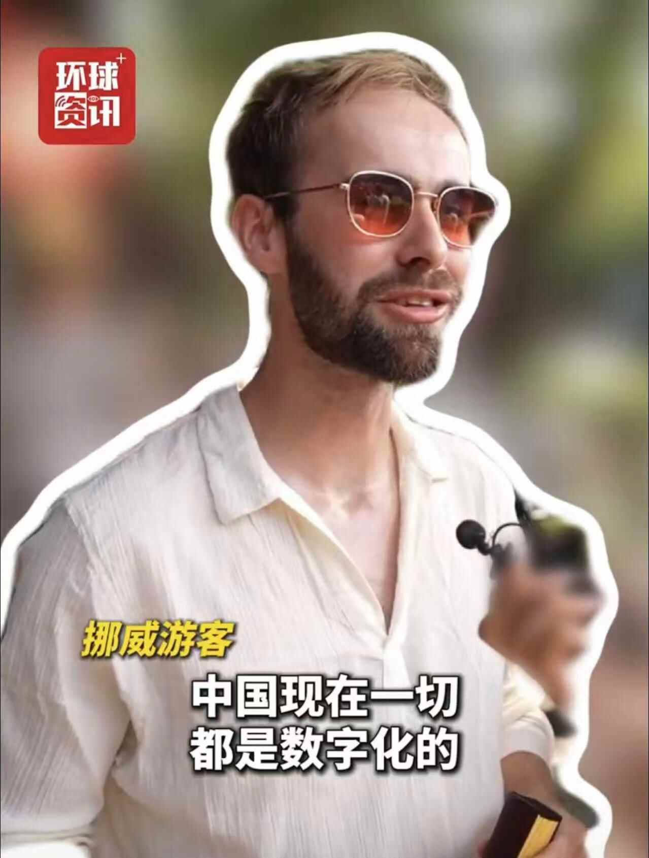 挪威游客兴奋地和记者分享他时隔十年再次来到中国的激动。