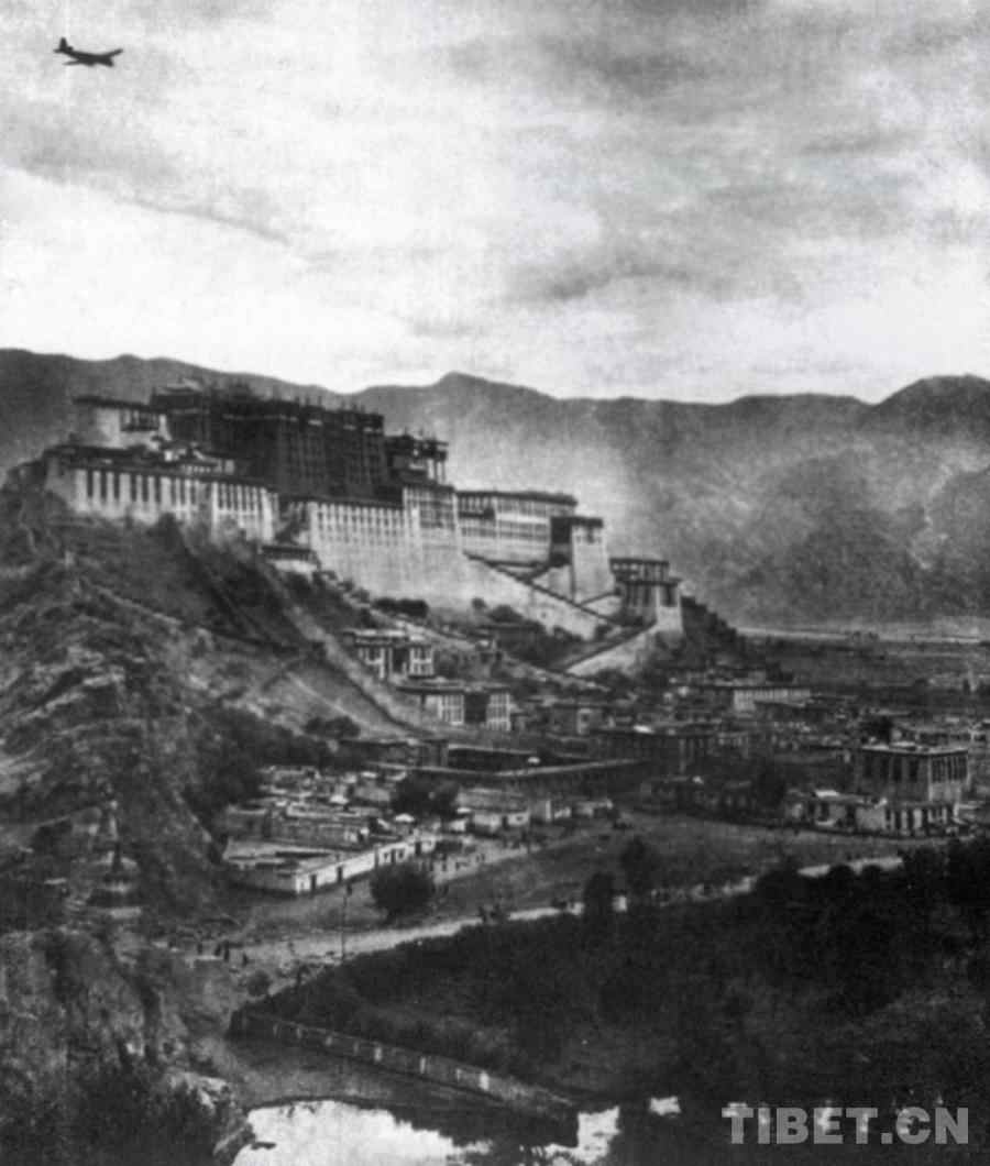 历史照片:西藏民航飞机飞过布达拉宫。民航西藏自治区管理局供图
