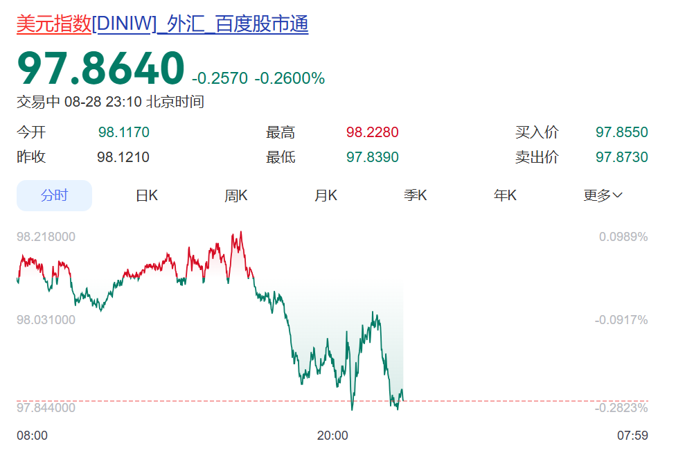 美元指数跳水,跌破98整数关口。