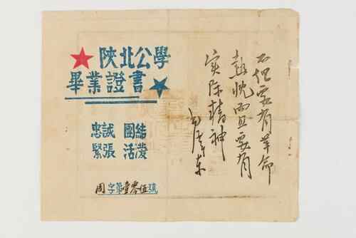 中共一大纪念馆馆藏的陕北公学毕业证书。中共一大纪念馆供图