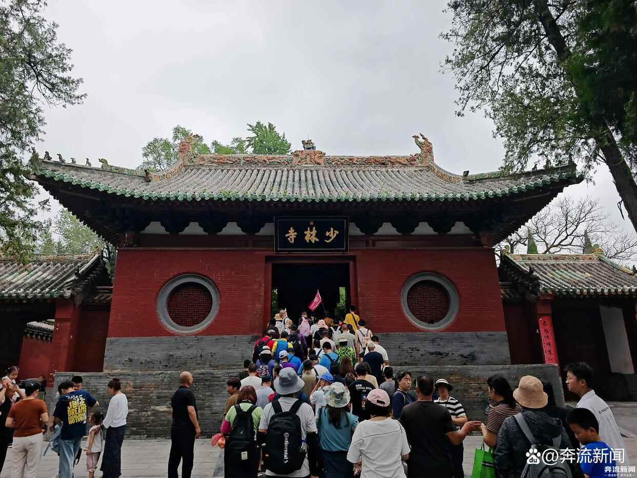 早晨7点半,嵩山少林寺景区门口,不少游客打卡留影,几名当地人吆喝着拍照“十元一张,快拍快取。”一大早,已有导游带来了旅游团,其中不乏外国游客。有的在认真聆听导游讲解,也有人转身打量门口的建筑,感受少林文化的独特魅力。