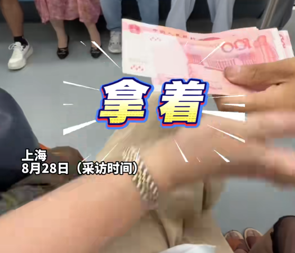 坐在黄女士左侧的老阿姨突然从包里掏出百元大钞,将500元递到男孩手中。男孩非常惊讶,连声说不要,阿姨坚持让男孩收下。