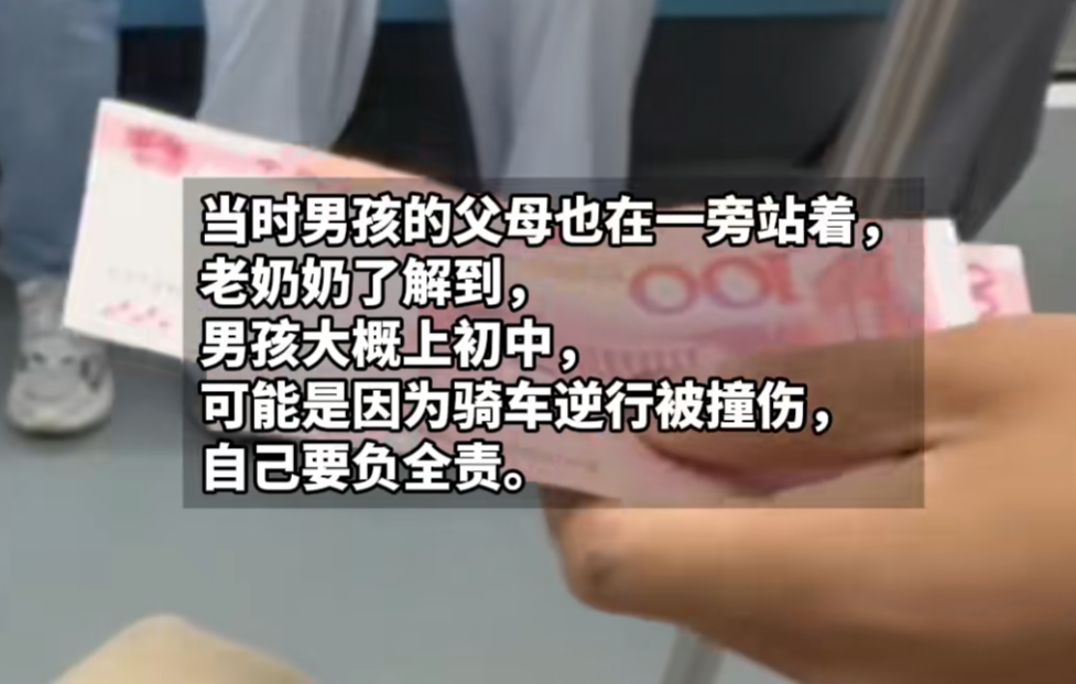 据安徽经视,黄女士后来在聊天中大概了解到,男孩是上初中的年纪,男孩的父母也在一旁,受伤是因为骑车逆行被撞伤,自己要负全责。