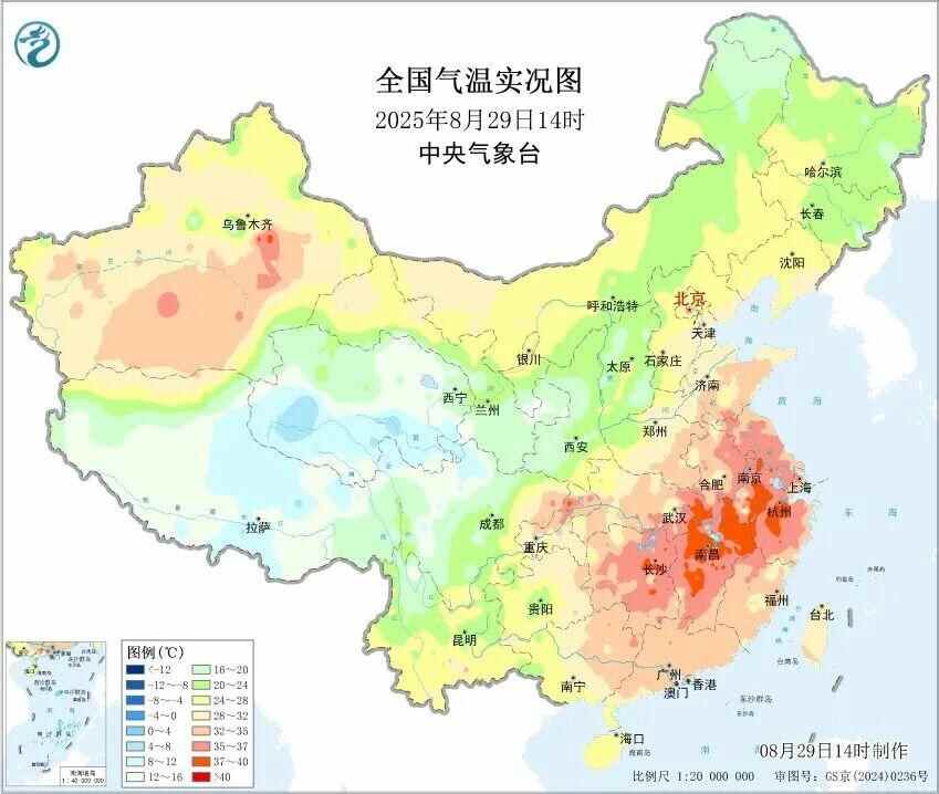 与此同时,黄淮南部一直到华南北部的大范围高温仍在持续,截至14时,安徽南部、江西北部局地最高气温超过了39℃。此外,上海已经连续24天高温,追平了当地观测史最长高温日数纪录。