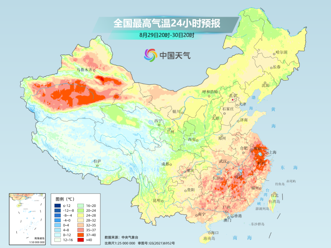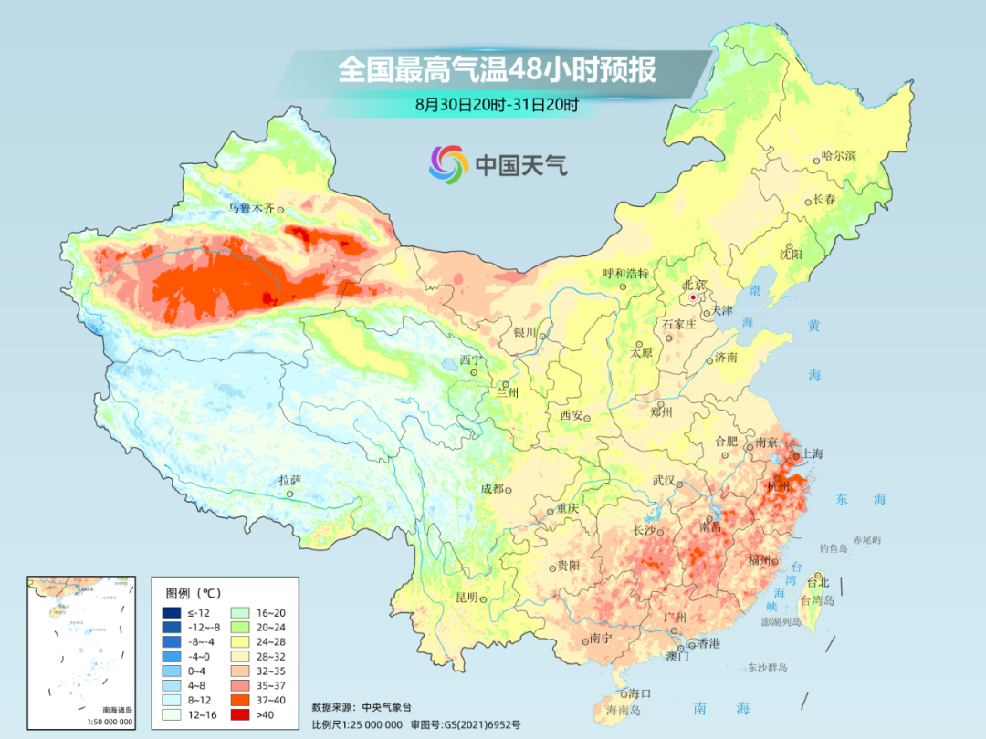 大城市中,南昌明天最高气温仍会有36℃,后天将降到33℃。上海、杭州的高温也将持续到8月最后一天,9月1日迎来暂停。
