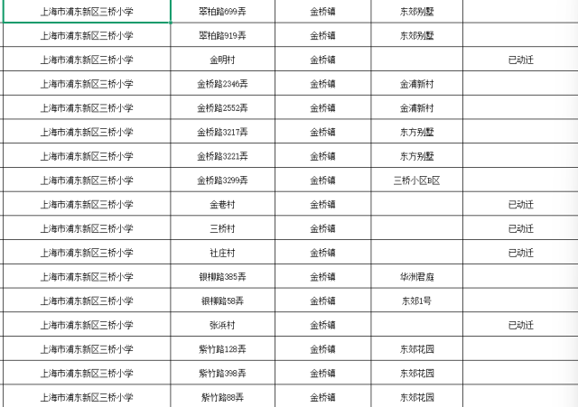 《2025年浦东新区公办小学招生地段公示》显示,三桥小学7个对口地段有六个在动迁