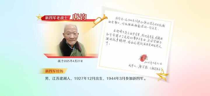 80年后,前行路上,如何从新四军的红色基因中汲取强大力量?新华日报·交汇点新闻派出多路青年记者,组团寻访80位百岁新四军老战士,重磅推出《归来仍是少年》系列融媒报道。每期由8位老战士联袂讲述,在一个个动人故事里记录历史,在一句句深情寄语里共绘未来,弘扬“初心不改,归来仍是少年”的主题精神,激励我们不断攻坚克难,书写中国式现代化建设风华正茂的新诗篇。