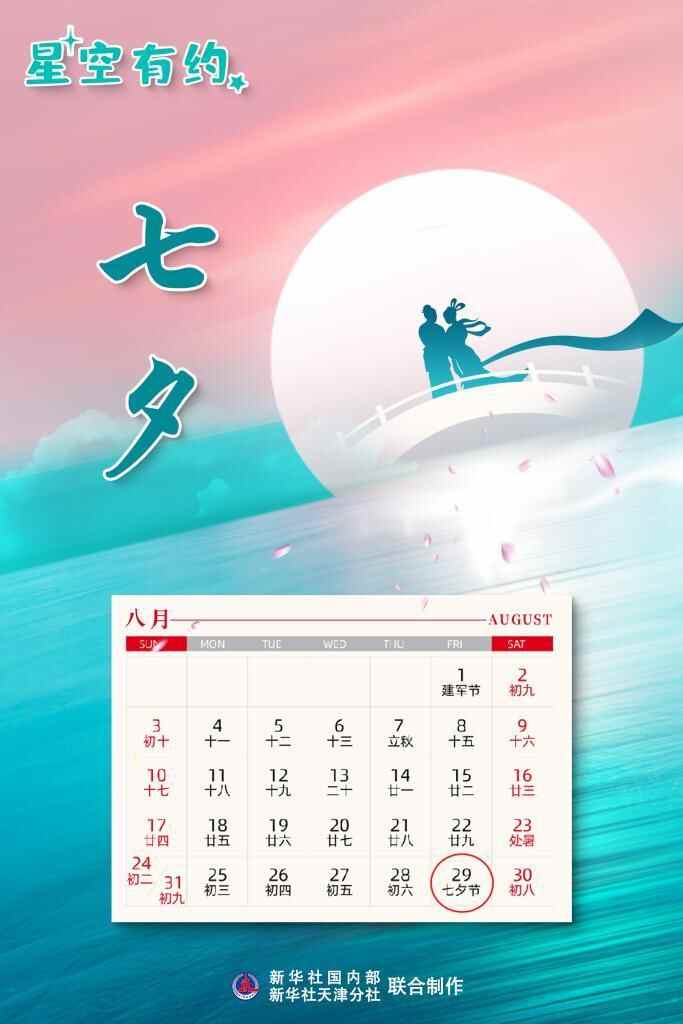七夕节是一个以爱情为主题的浪漫节日。这一天,我国民间有乞巧、晒书、拜月等习俗。“愿每一个人都能在这一天,感受到传统节日的独特魅力。”赖迪辉说。