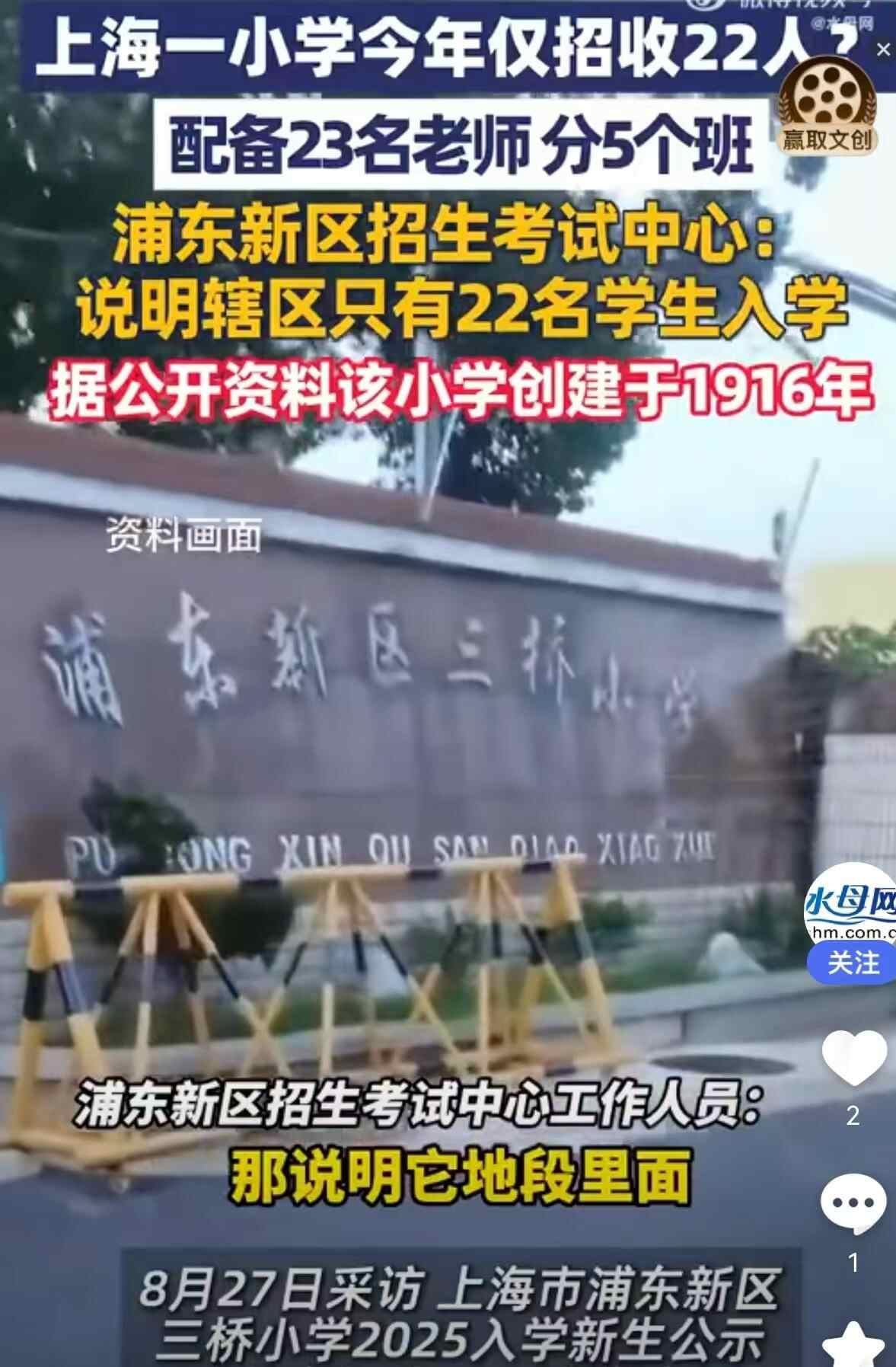 8月28日,羊城晚报记者查阅浦东新区教育局于今年4月7日公布的《2025年浦东新区义务教育阶段学校招生入学信息公示(小学)》发现,上海市浦东新区三桥小学目前办学规模为班级数5个,学生22人;专职教师人数为23人。