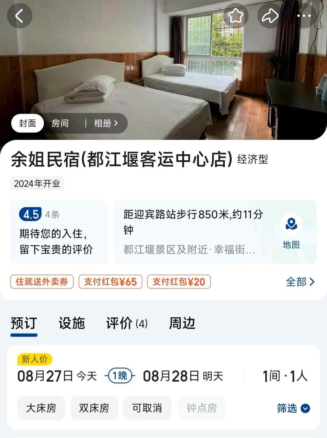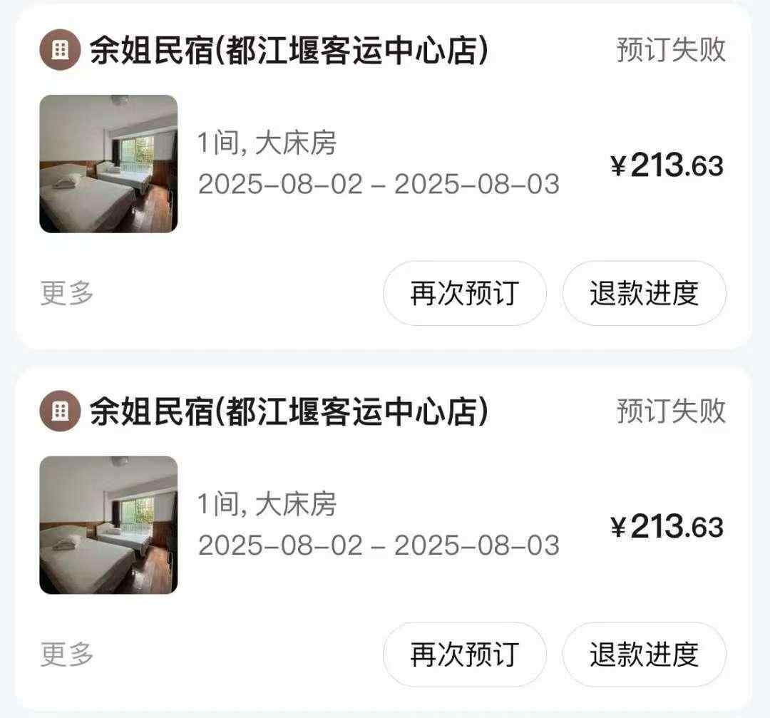 据王女士介绍,8月2日,她陪父母自驾抵达都江堰,由于天色已晚,大部分酒店已经满房,她转而在某平台的“余姐民宿(都江堰客运中心店)”预订了两间房,总价值420多元,通过平台线上支付。