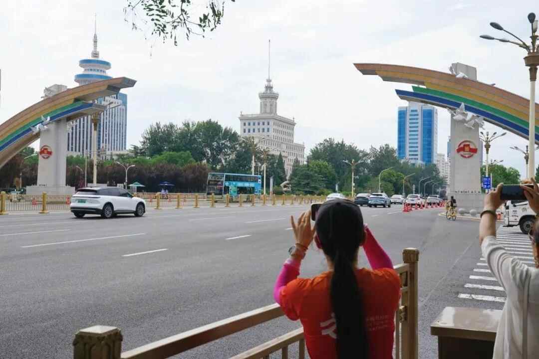 “快看,和平鸽‘飞’上了彩虹门!”28日下午,在复兴门彩虹门北侧,刚和花坛拍了张合影的朱女士一抬头,就发现了彩虹门的新景观。她身着专业跑步服,特意来到长安街跑步,一路打卡沿线景观。“一直关注纪念活动的最新动态,十分期待9月3日的到来!”她边翻阅手机相册照片边说,长安街的新布置不仅颜值高,而且很有纪念意义。