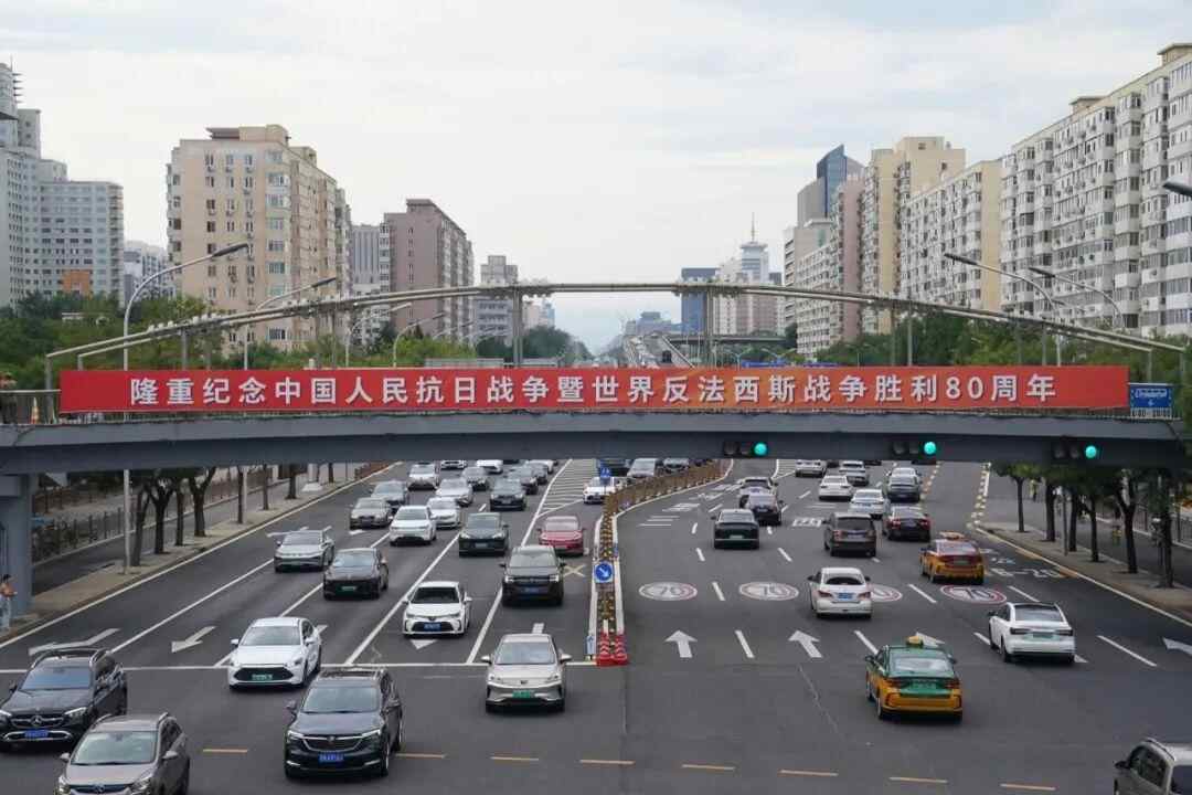 据了解,全市范围过街天桥还布置了260余条硬质横幅,横幅以红色金色渐变色为主色调,飘扬红旗搭配金色光带为底纹,搭配白色标语口号;宣传栏、文化墙布置约8000块宣传画面,约6.2万块公交移动电视、地铁电视、城市电视屏幕滚动播放宣传画面和口号,表达全国人民铭记历史、珍爱和平的坚定立场和对祖国繁荣富强、欣欣向荣的美好祝愿。