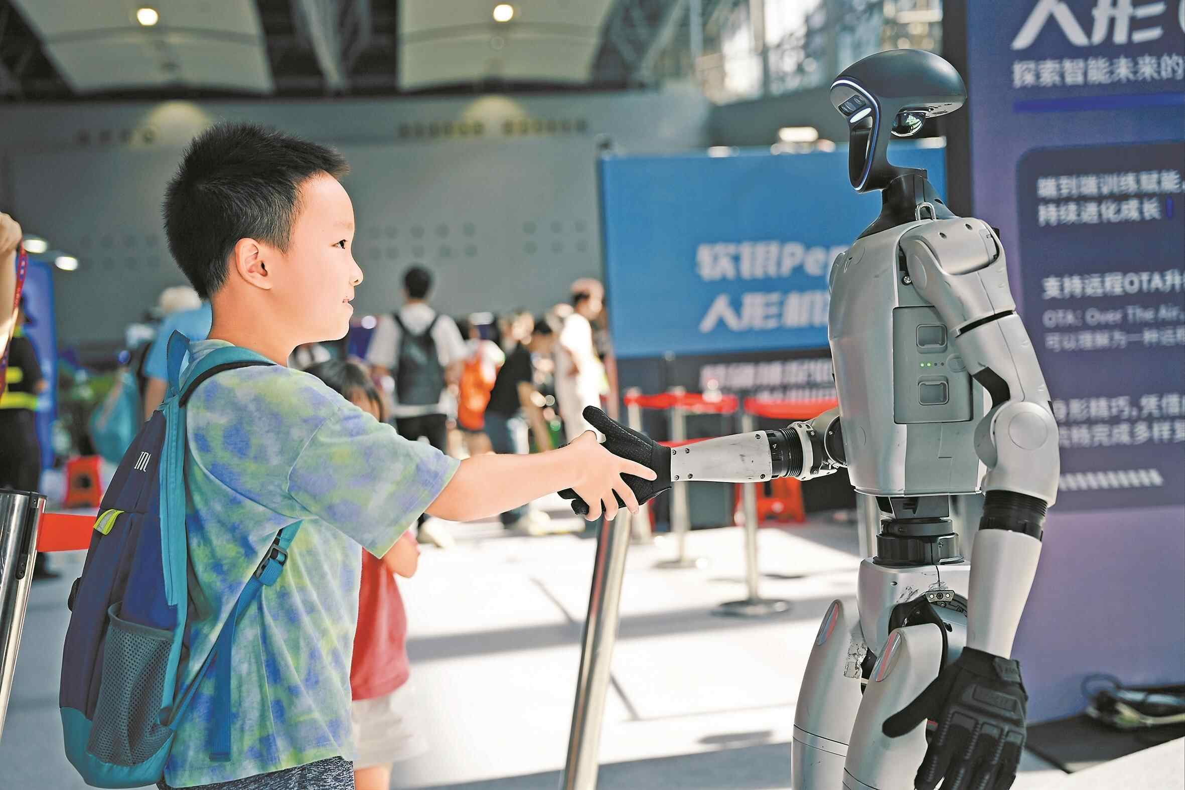 “太炫酷了!”“好好玩啊!”……展会首次设立的机器人表演专区,不时传来观众的赞叹声。该展区汇聚了近150个机器人集体“整活”,吸引众多人围观。在该展区,既能看到灵动的跳舞机器人通过AI系统识别音乐,快速匹配与之适配的舞蹈动作;也能看到AI中医机器人融合中医千年智慧,快速精准采集舌象、脉象,进行体质辨识并给出专业健康建议;还能与机器人下棋,获得新奇体验。