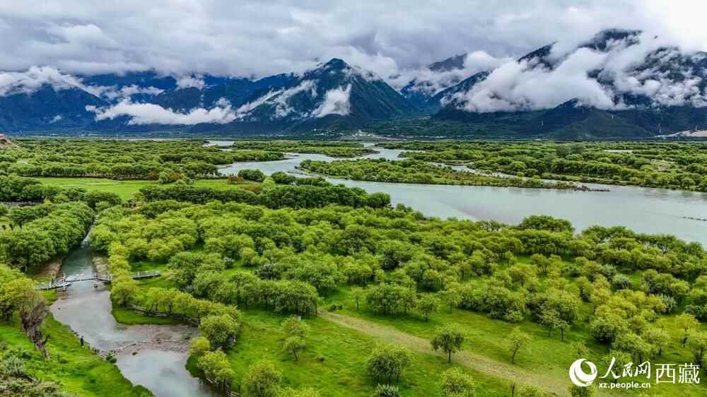 鸟瞰盛夏季节的雅尼湿地风光。人民网记者 次仁罗布摄
