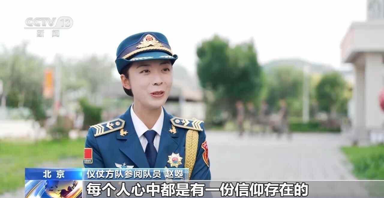 仪仗方队受阅队员 赵曌:每个人心中都是有一份信仰存在的,大家在这种鼓励的过程中不断地坚持下去了,觉得这种训练强度都能接受,慢慢地也就凝聚了这种力量。