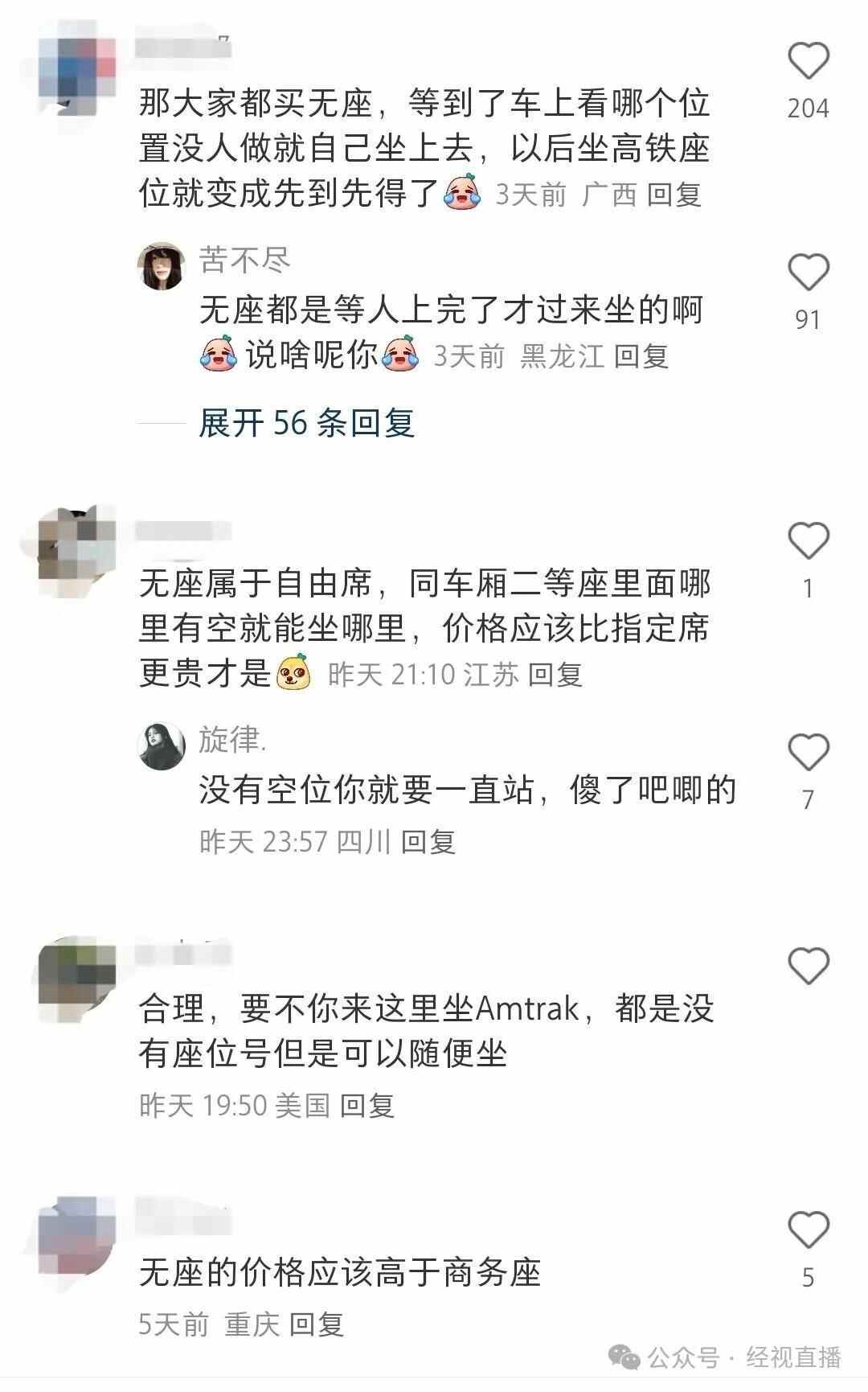 不少网友强调,自己购买无座票往往是出于紧急出行不得已而为之,并非首选,因此票价应体现出服务的差异。