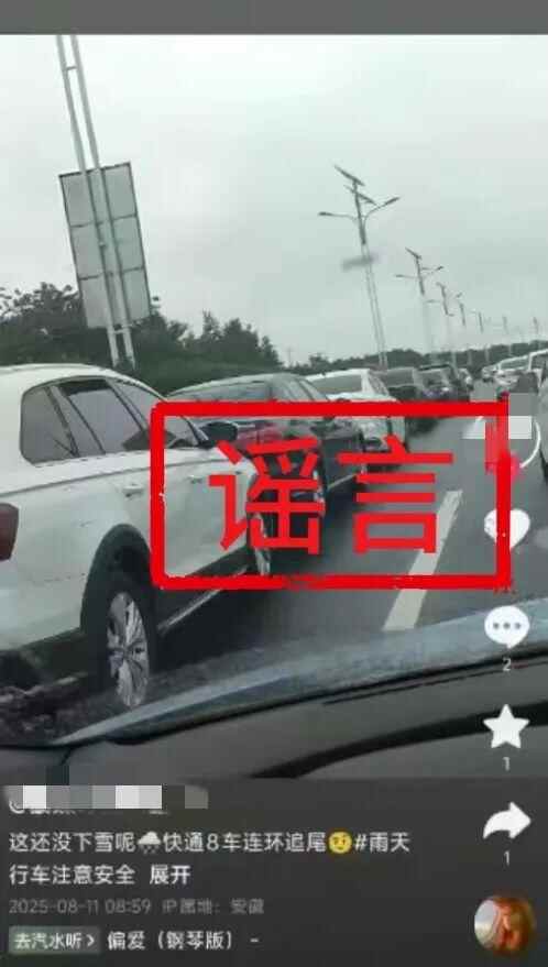 近日,滁州公安网安部门查明,薛某某为博取眼球,吸引流量,在某短视频平台发布“滁宁快通发生8车连环追尾”不实言论,公安机关依法对薛某某予以行政处罚。