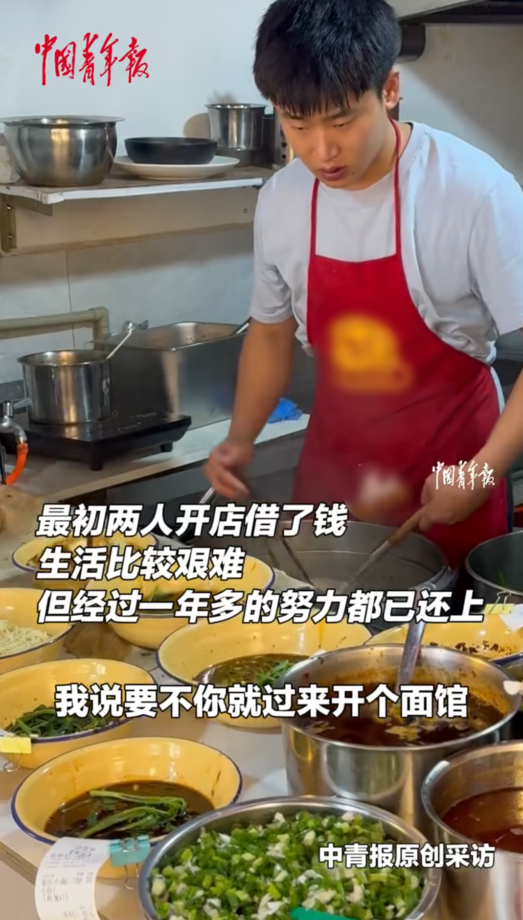 近日,大专男生为陪女友读研离乡创业开面馆一事引发广泛关注。幸福的视频画面下,有人祝福,也有人对事情真实性表示质疑。8月20日,有媒体记者就此联系到了当事男生小张及其女友小杨。小杨称,他们的故事都是真实的,“网上的负面评价确实有很多,我们能做的就是过好自己的生活。”