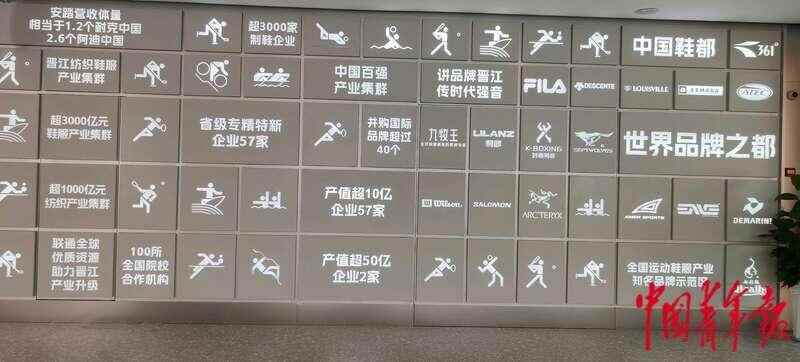 福建晋江运动时尚(全球)创新中心内的品牌介绍。中青报·中青网记者 王俊秀/摄