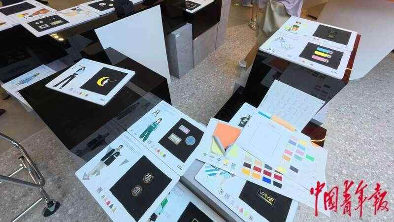 福建晋江运动时尚(全球)创新中心,设计师工作室的桌面上散落着运动时尚服饰设计稿、配色卡和材料样本。中青报·中青网见习记者 陈思阳/摄