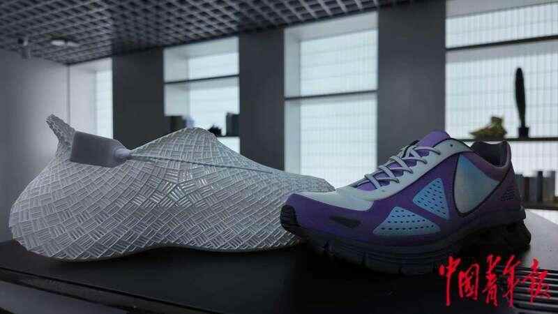 福建晋江运动时尚(全球)创新中心,通过全彩色3D打印技术出来的运动鞋助力设计师创意实现。中青报·中青网见习记者 陈思阳/摄