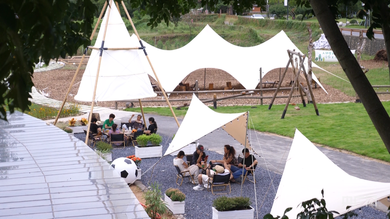 2023年,俞佳慧在自家的葡萄园旧址上打造了一个家庭农场,为亲子家庭提供休憩、游玩、打卡的田园生活体验空间。“2023年国庆节期间,农场刚一开业,就吸引到每天几百人的客流量。”俞佳慧说,余村乃至整个安吉的民宿、村咖赛道都已经足够“卷”了,她希望能为游客留在余村找到更多理由。