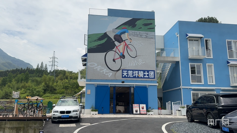 在距离余村不远的银坑村,田野上的几间蓝房子十分惹人注目,这里已然成为周边城市骑行爱好者的一个据点。“我们过来既可以住宿,又有咖啡餐饮,并且还提供自行车存放、专业骑行线路规划推荐等服务,真的特别方便。”来自上海的骑行爱好者李君亮,对于这一开设在美丽山乡的新业态赞不绝口。