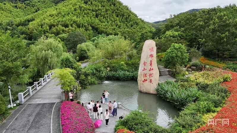 余村村口的“两山”理念纪念碑已成为游客必选打卡点之一(央广网记者 尚天宇 摄)