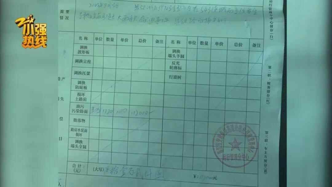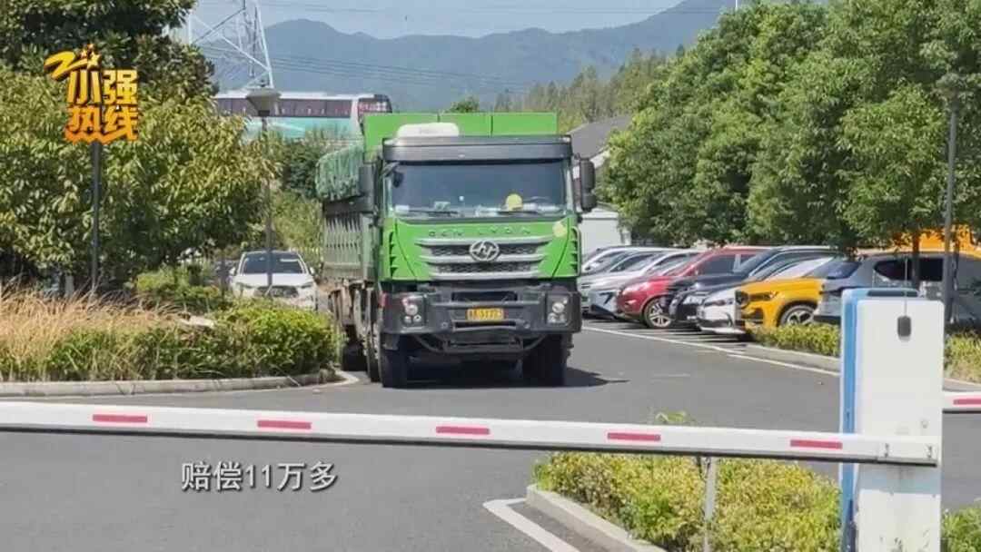 “交警给我们开了放车单,这个门岗不让我们出,他说马路上撒油了,污染马路,需要我赔偿11万多,他说按面积算,1平方100块。”