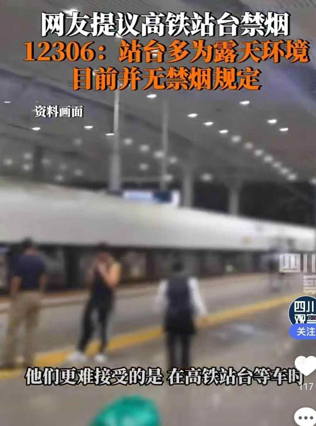 8月21日,12306客服回应羊城晚报记者称,目前暂无关于站台禁烟的明确规定,有些站台上会设立吸烟区,“不影响他人的话,在规定区域是可以抽的”。但据网友反馈,当前仍有部分车站未设立吸烟区,对于网友们在站台增加吸烟区的呼吁,该客服称会记录反馈。