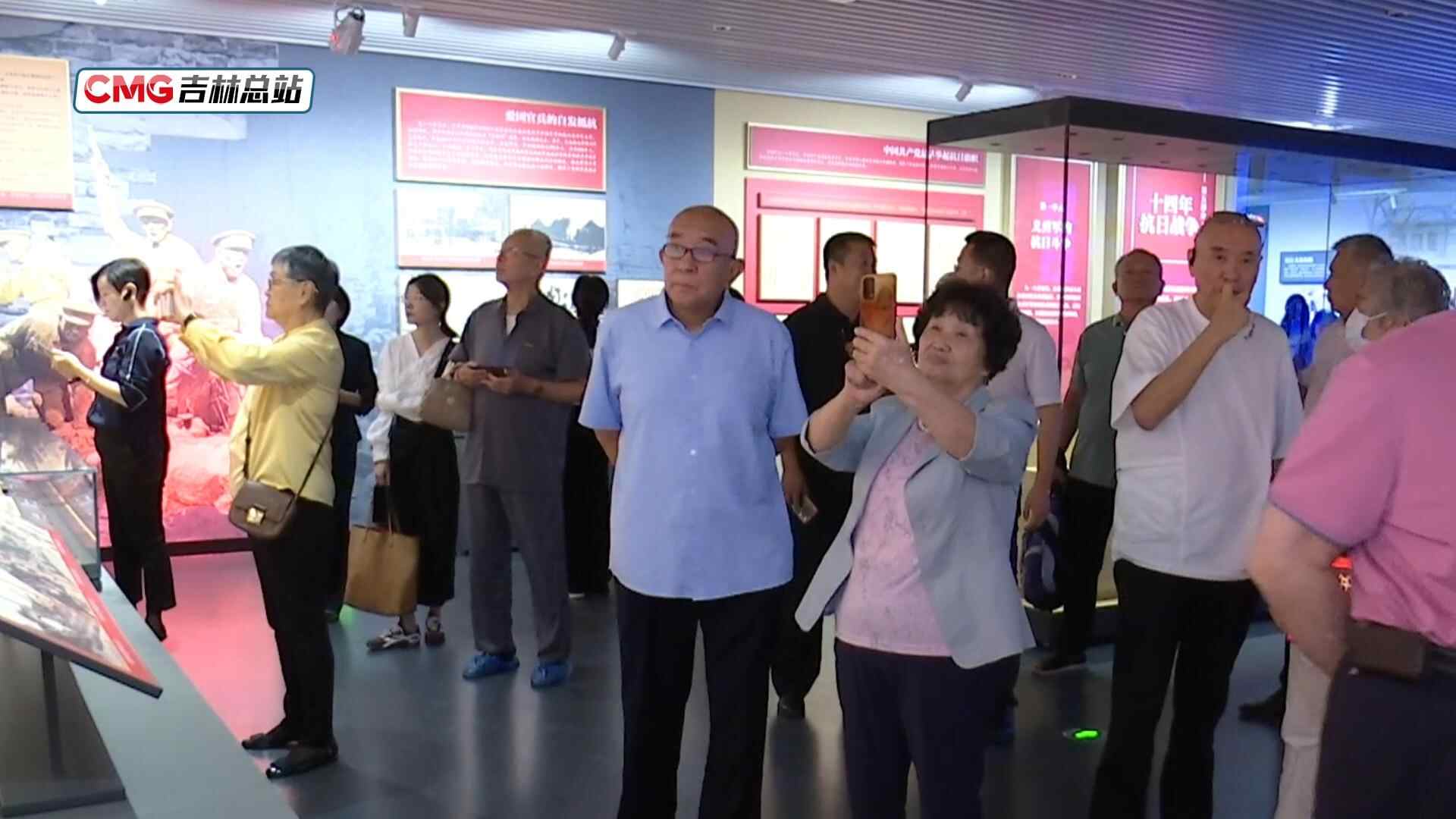 ▲ 东北抗日联军名将李延禄的外甥女杨丽珍等英雄模范后人参观展览