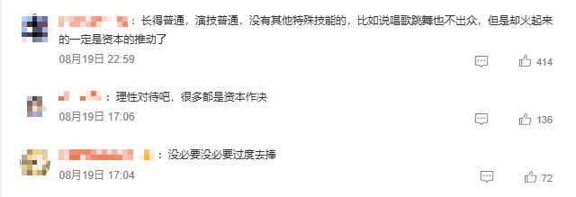 不少网友认同王晶“明星爆火是资本在背后做局”的言论,还有网友表示,长得普通,演技普通,没有其他特殊技能的,比如唱歌、跳舞也不出众,但是却火起来的,一定是有资本的推动。