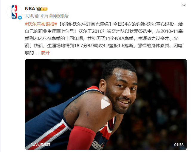 沃尔在一份官方声明中写道:“今天我宣布从职业篮球界退役,结束自己的职业生涯。篮球一直都是我生活中的非常重要部分,但我同时认为自己应该向人生的下一个篇章前进了。”