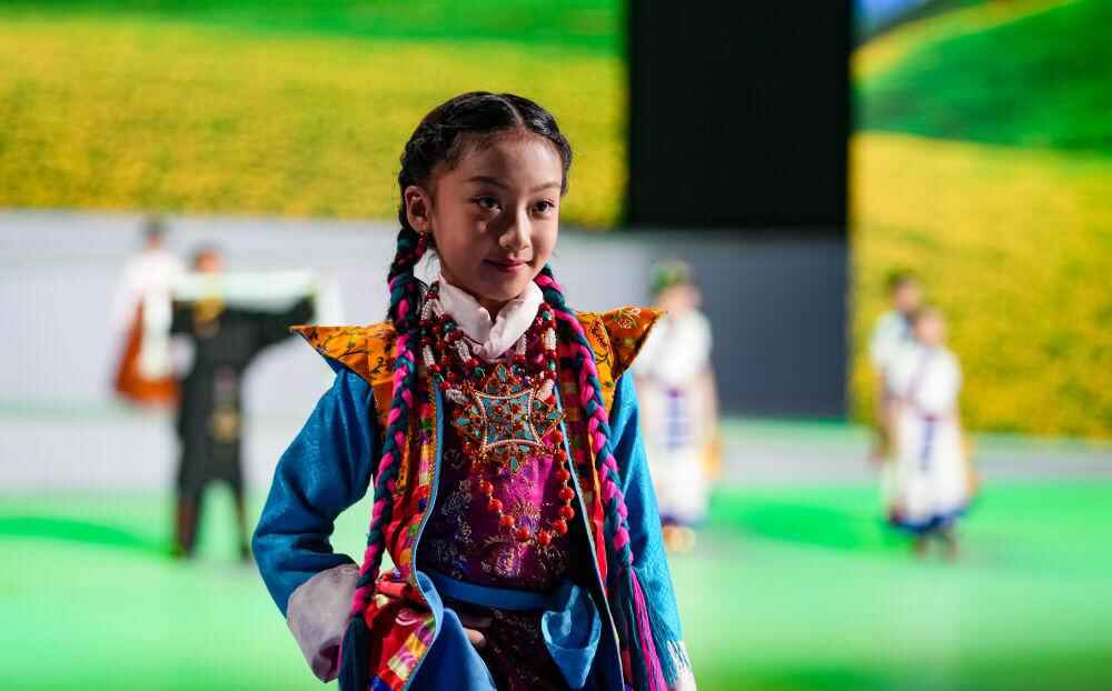 2025年1月5日,首届西藏“衣脉相承”服饰文化周上小朋友展示藏式童装。新华社记者 晋美多吉 摄