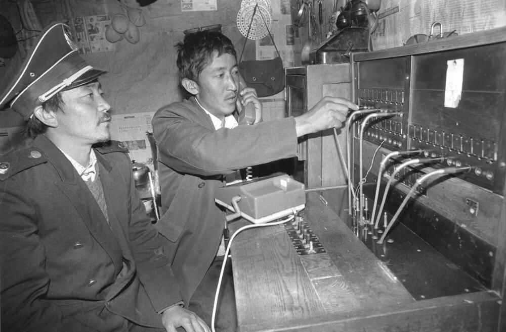 1994年4月16日,西藏江孜县年堆乡工作人员正在接电话。新华社记者 土登 摄