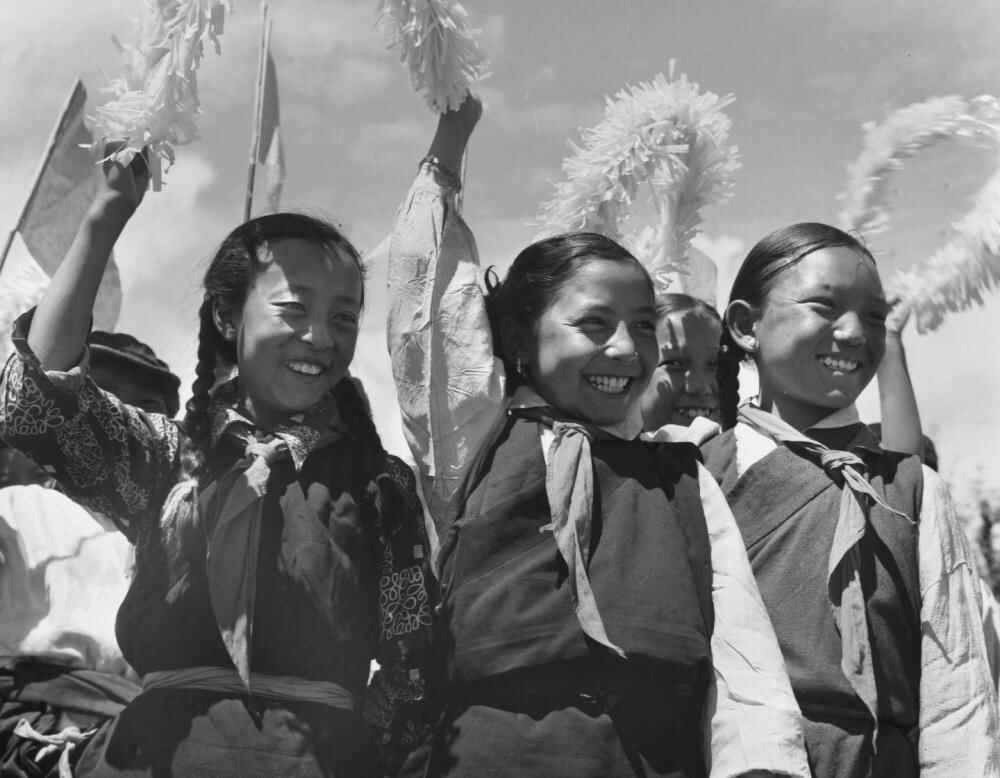 1965年9月,藏族儿童在西藏自治区成立大会上欢呼。新华社记者 马竞秋 摄