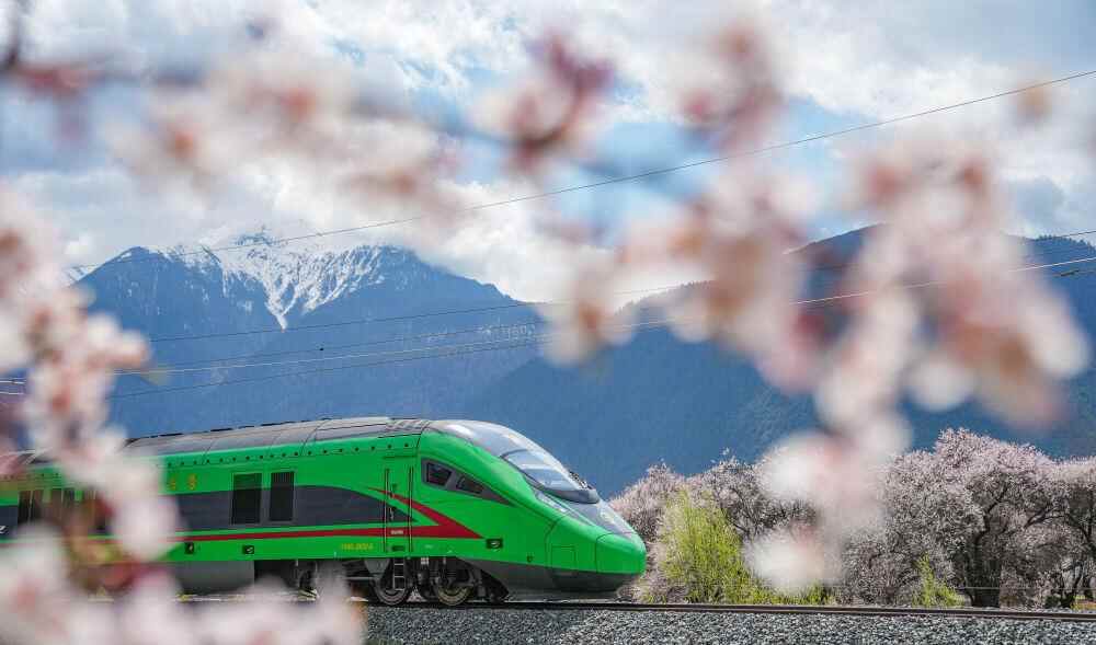 2025年4月2日,复兴号列车穿行在拉林铁路林芝段。新华社记者 丁增尼达 摄