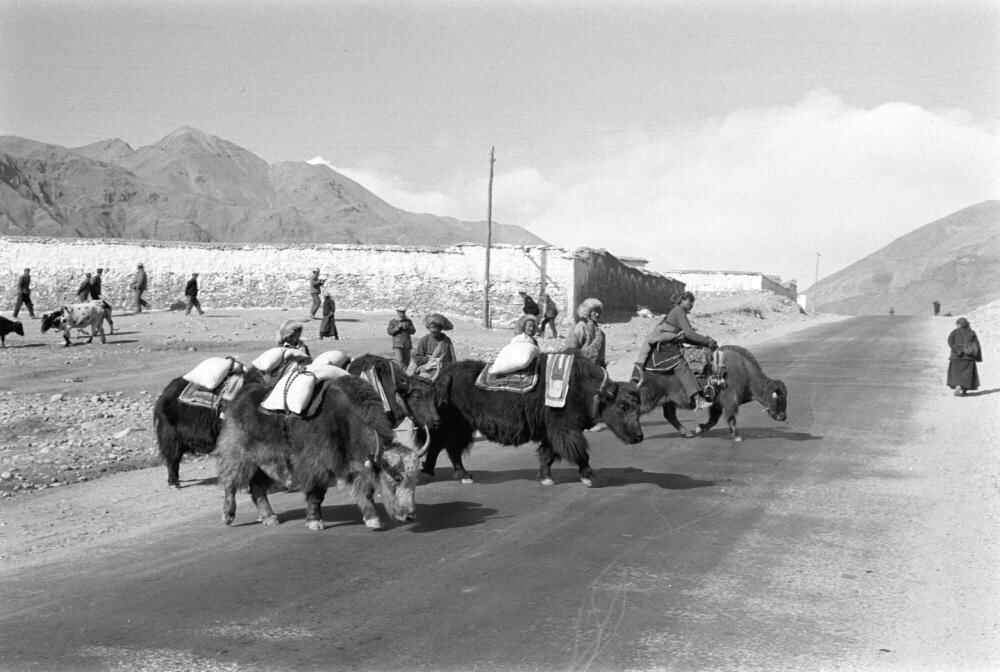 1984年1月,西藏堆龙德庆县(现为堆龙德庆区)的牧民用牦牛把饲料驮回家。新华社记者 徐澎 摄