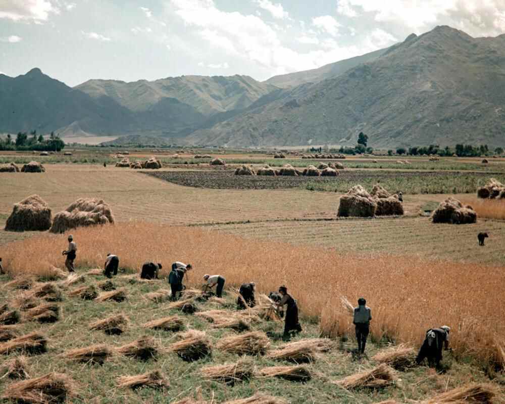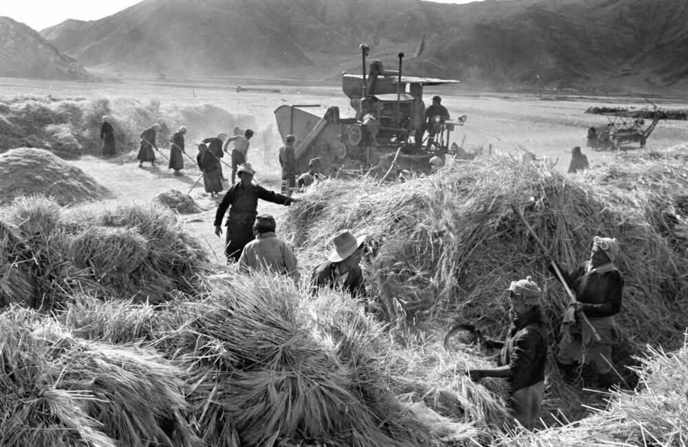 1965年8月,林芝县(现为林芝市)立定乡组织农民收割青稞。新华社记者 马竞秋 摄