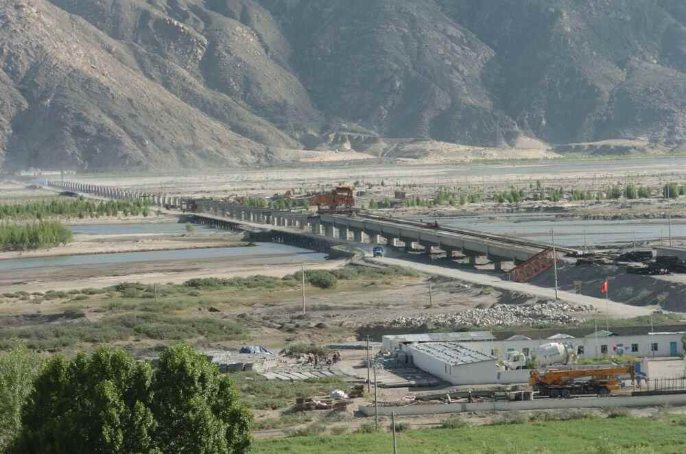 这是2004年6月7日拍摄的建设中的跨雅鲁藏布江特大桥。新华社记者 土登 摄